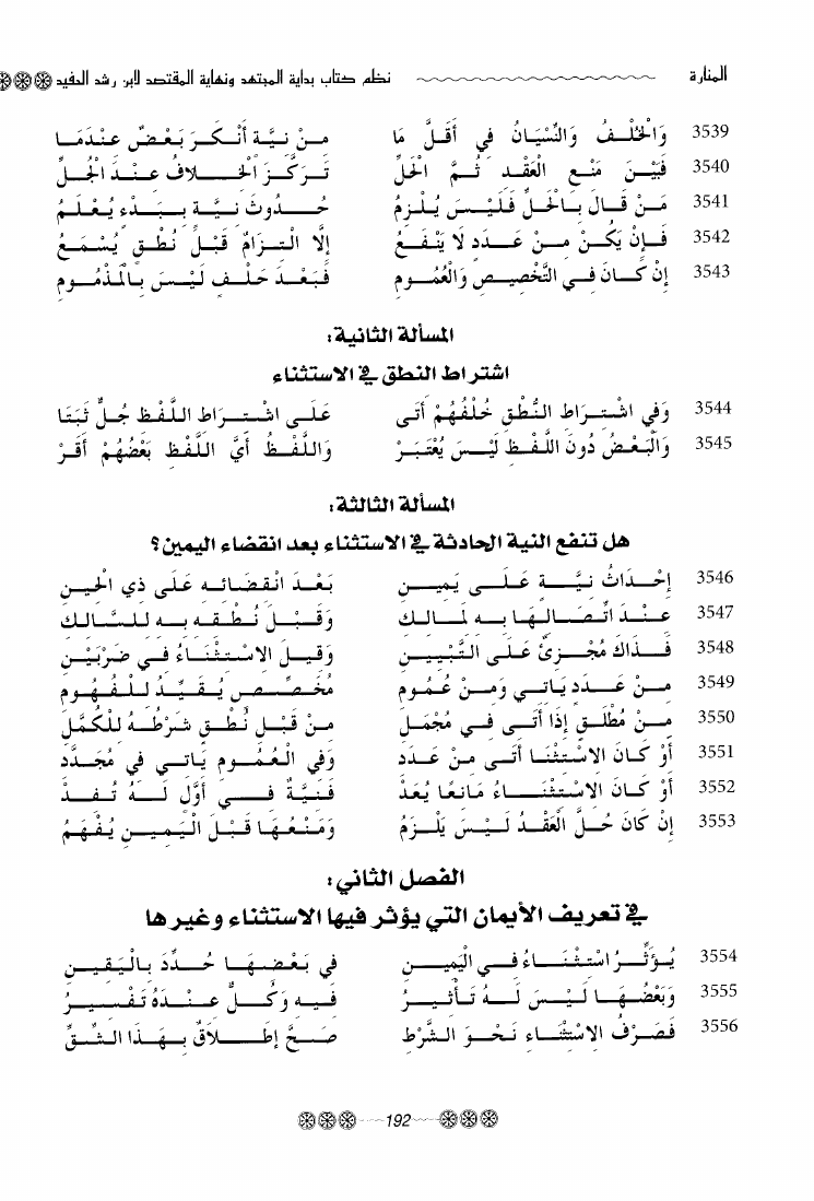المنارة نظم كتاب بداية المجتهد ونهاية المقتصد