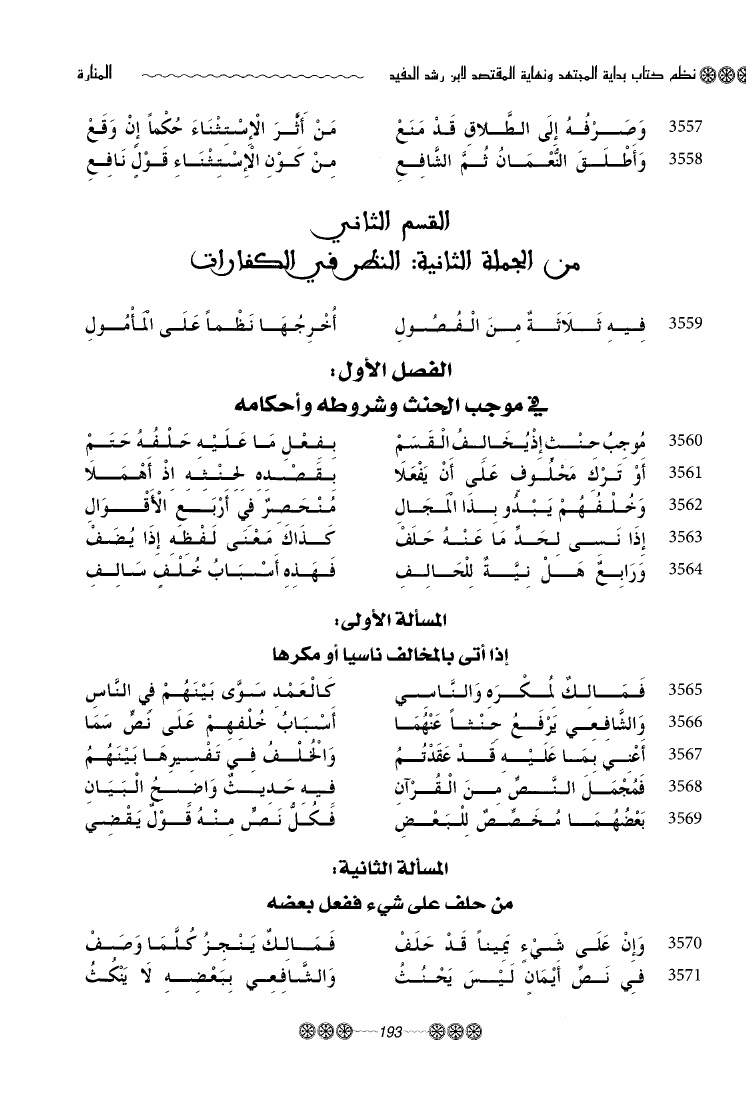 المنارة نظم كتاب بداية المجتهد ونهاية المقتصد
