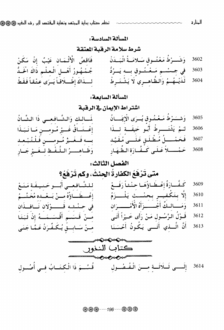 المنارة نظم كتاب بداية المجتهد ونهاية المقتصد