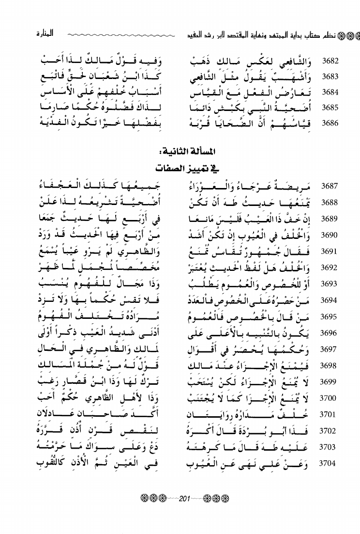 المنارة نظم كتاب بداية المجتهد ونهاية المقتصد
