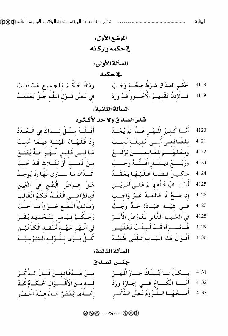 المنارة نظم كتاب بداية المجتهد ونهاية المقتصد
