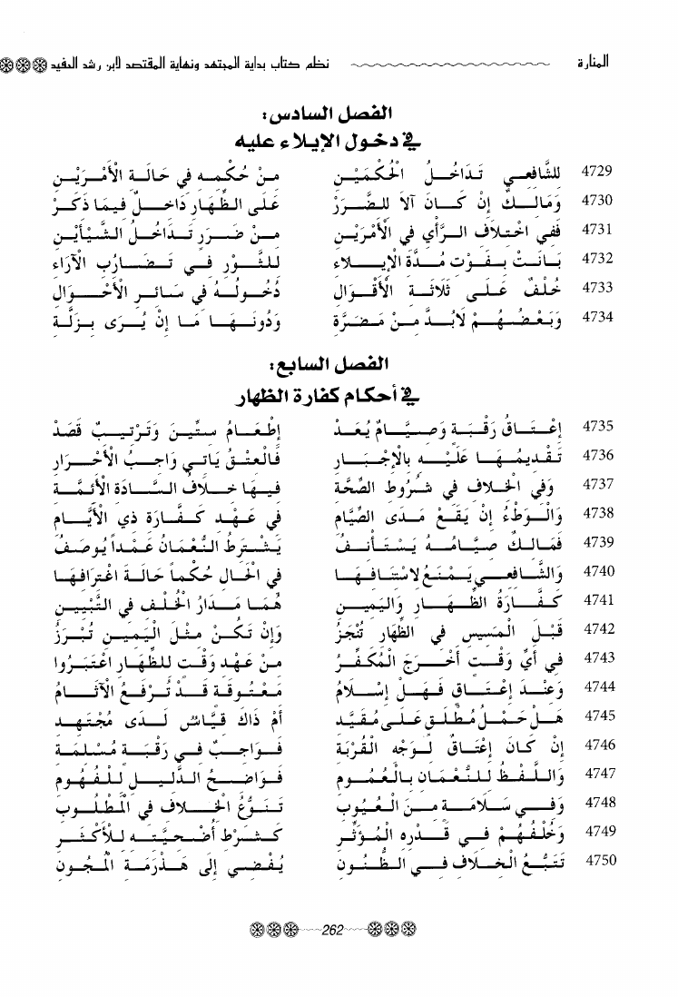 المنارة نظم كتاب بداية المجتهد ونهاية المقتصد