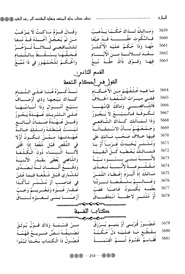 المنارة نظم كتاب بداية المجتهد ونهاية المقتصد