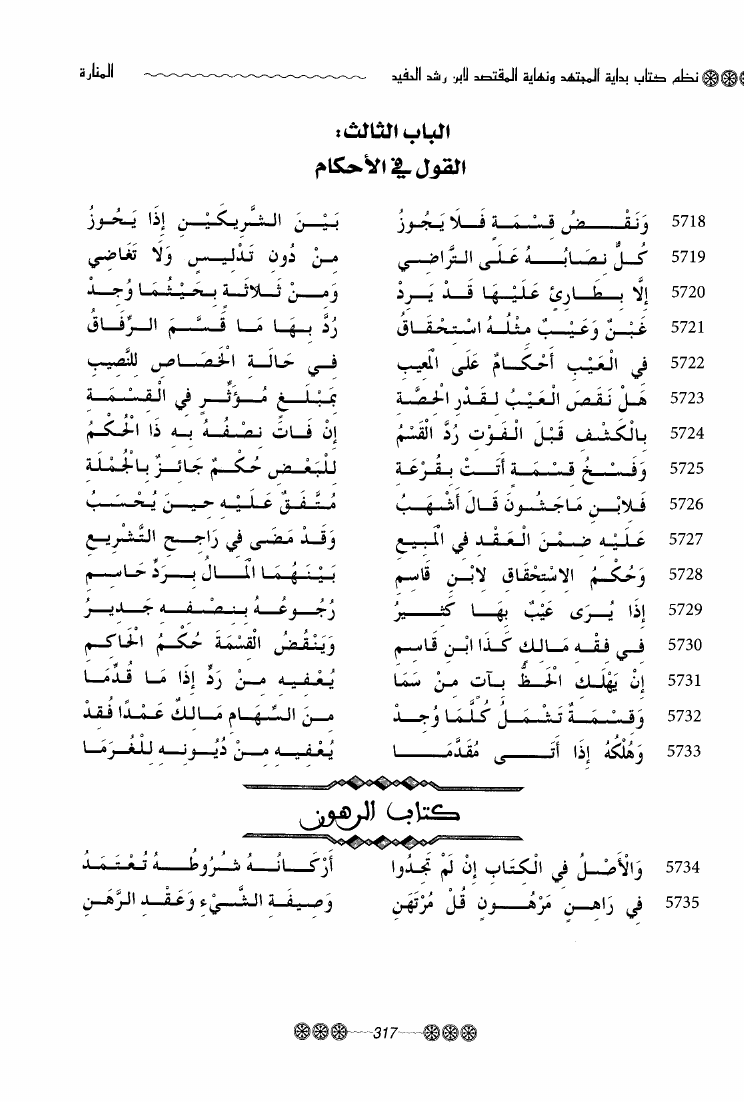 المنارة نظم كتاب بداية المجتهد ونهاية المقتصد