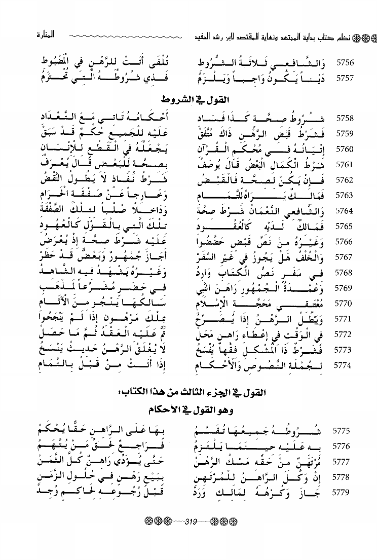 المنارة نظم كتاب بداية المجتهد ونهاية المقتصد