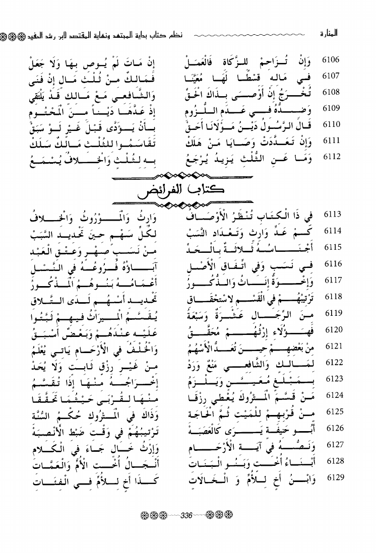 المنارة نظم كتاب بداية المجتهد ونهاية المقتصد