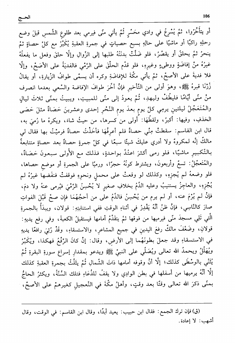 نام کتاب : جامع الأمهات أو مختصر ابن الحاجب الفرعي ومعه درر القلائد وغرر الطرر والفوائد (ت: الطنجي) نویسنده : عثمان بن عمر بن أبي بكر بن الحاجب جلد : 1 صفحه : 106