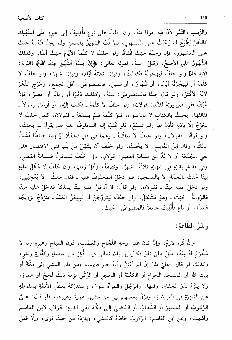 نام کتاب : جامع الأمهات أو مختصر ابن الحاجب الفرعي ومعه درر القلائد وغرر الطرر والفوائد (ت: الطنجي) نویسنده : عثمان بن عمر بن أبي بكر بن الحاجب جلد : 1 صفحه : 130