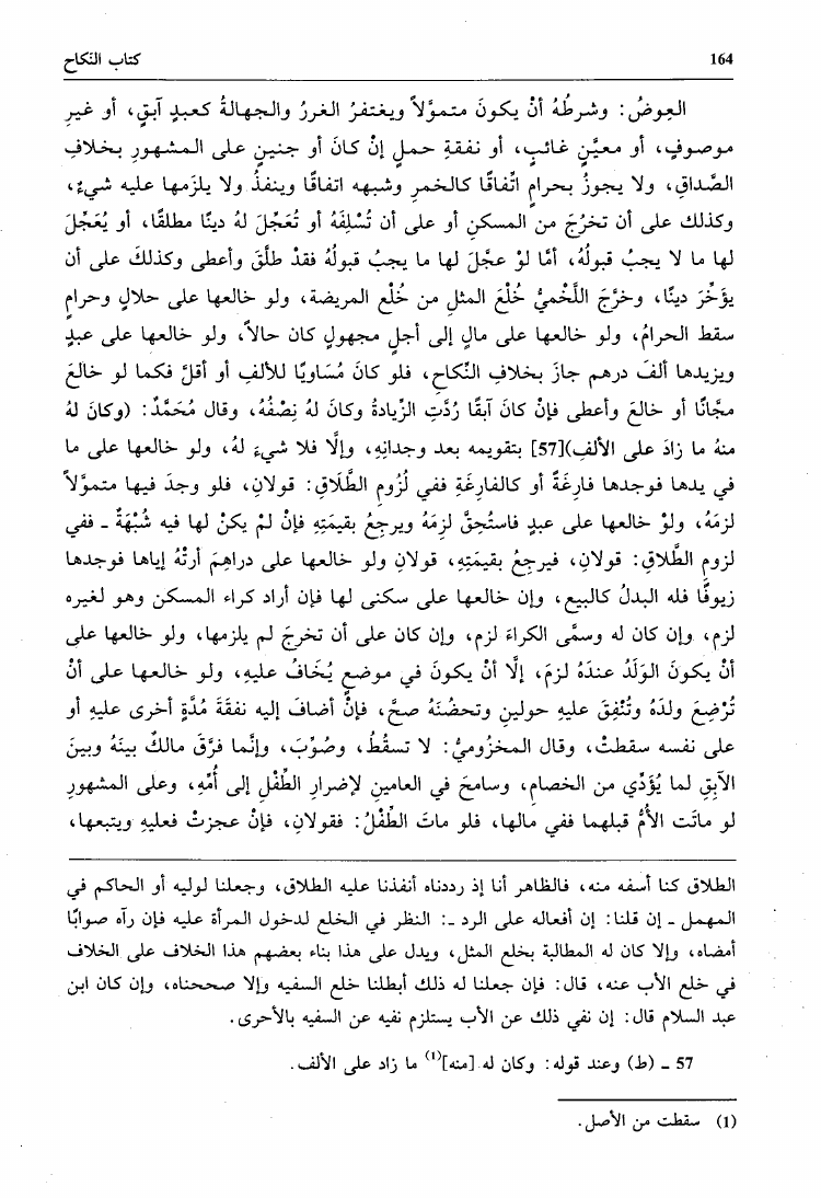 نام کتاب : جامع الأمهات أو مختصر ابن الحاجب الفرعي ومعه درر القلائد وغرر الطرر والفوائد (ت: الطنجي) نویسنده : عثمان بن عمر بن أبي بكر بن الحاجب جلد : 1 صفحه : 164