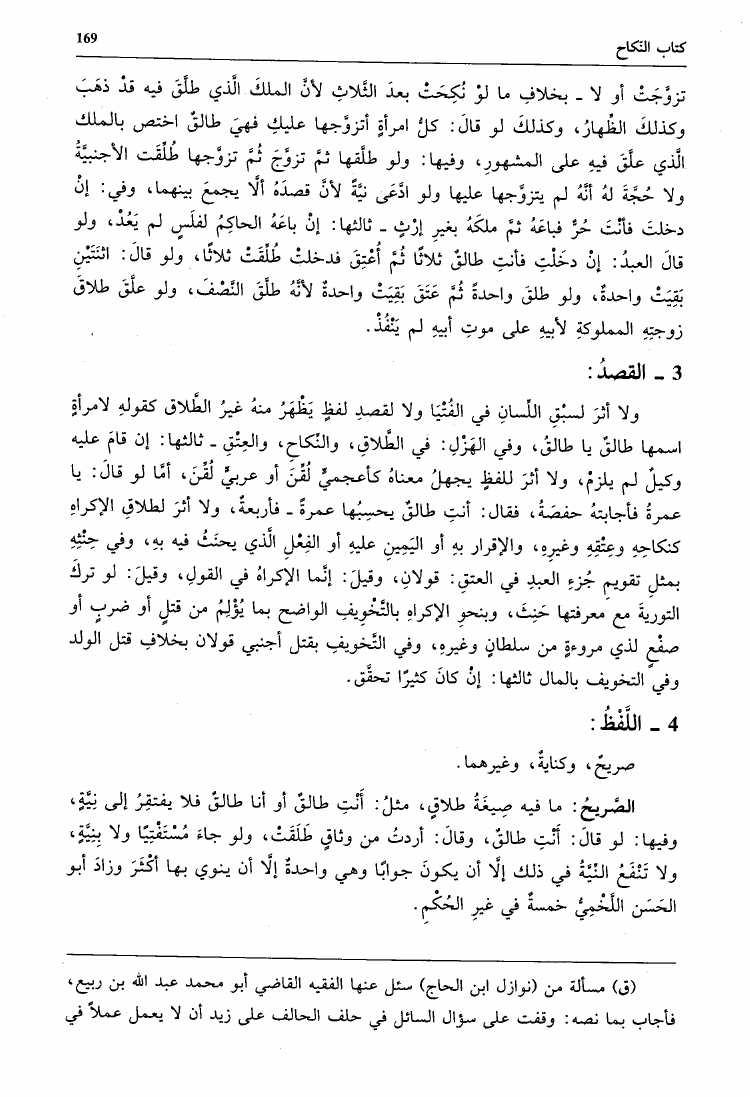 نام کتاب : جامع الأمهات أو مختصر ابن الحاجب الفرعي ومعه درر القلائد وغرر الطرر والفوائد (ت: الطنجي) نویسنده : عثمان بن عمر بن أبي بكر بن الحاجب جلد : 1 صفحه : 169
