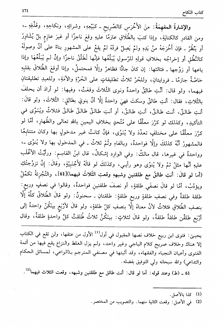 نام کتاب : جامع الأمهات أو مختصر ابن الحاجب الفرعي ومعه درر القلائد وغرر الطرر والفوائد (ت: الطنجي) نویسنده : عثمان بن عمر بن أبي بكر بن الحاجب جلد : 1 صفحه : 171