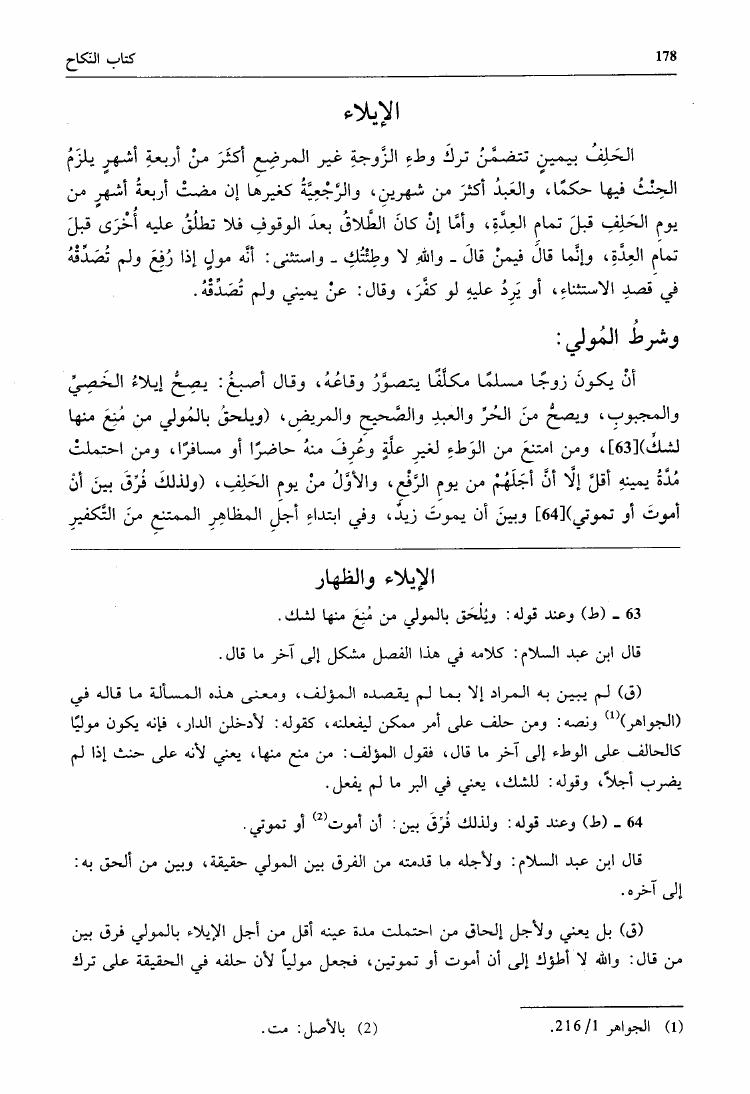 نام کتاب : جامع الأمهات أو مختصر ابن الحاجب الفرعي ومعه درر القلائد وغرر الطرر والفوائد (ت: الطنجي) نویسنده : عثمان بن عمر بن أبي بكر بن الحاجب جلد : 1 صفحه : 178