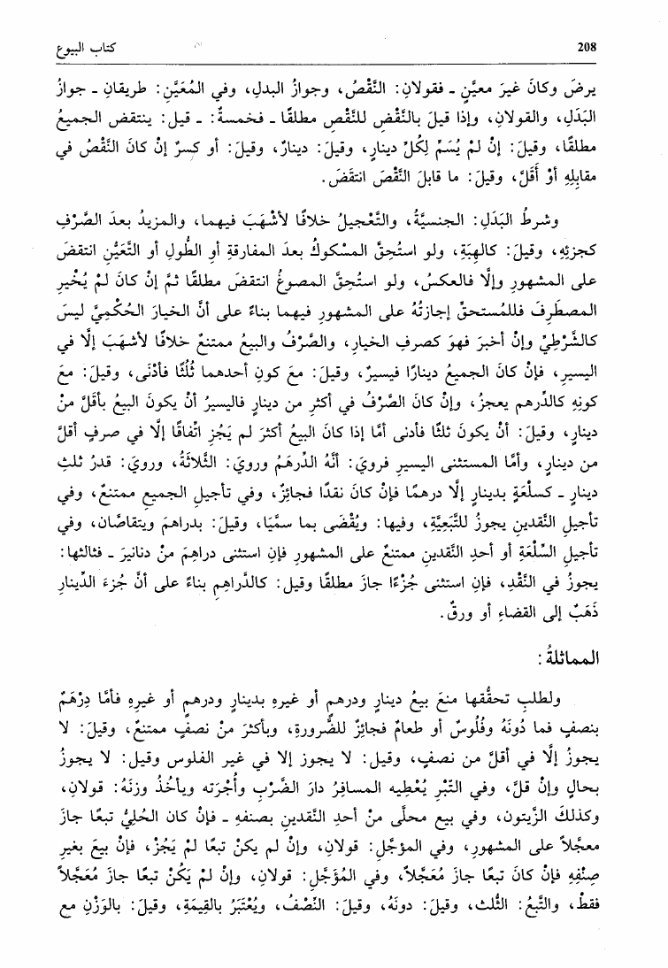 نام کتاب : جامع الأمهات أو مختصر ابن الحاجب الفرعي ومعه درر القلائد وغرر الطرر والفوائد (ت: الطنجي) نویسنده : عثمان بن عمر بن أبي بكر بن الحاجب جلد : 1 صفحه : 208