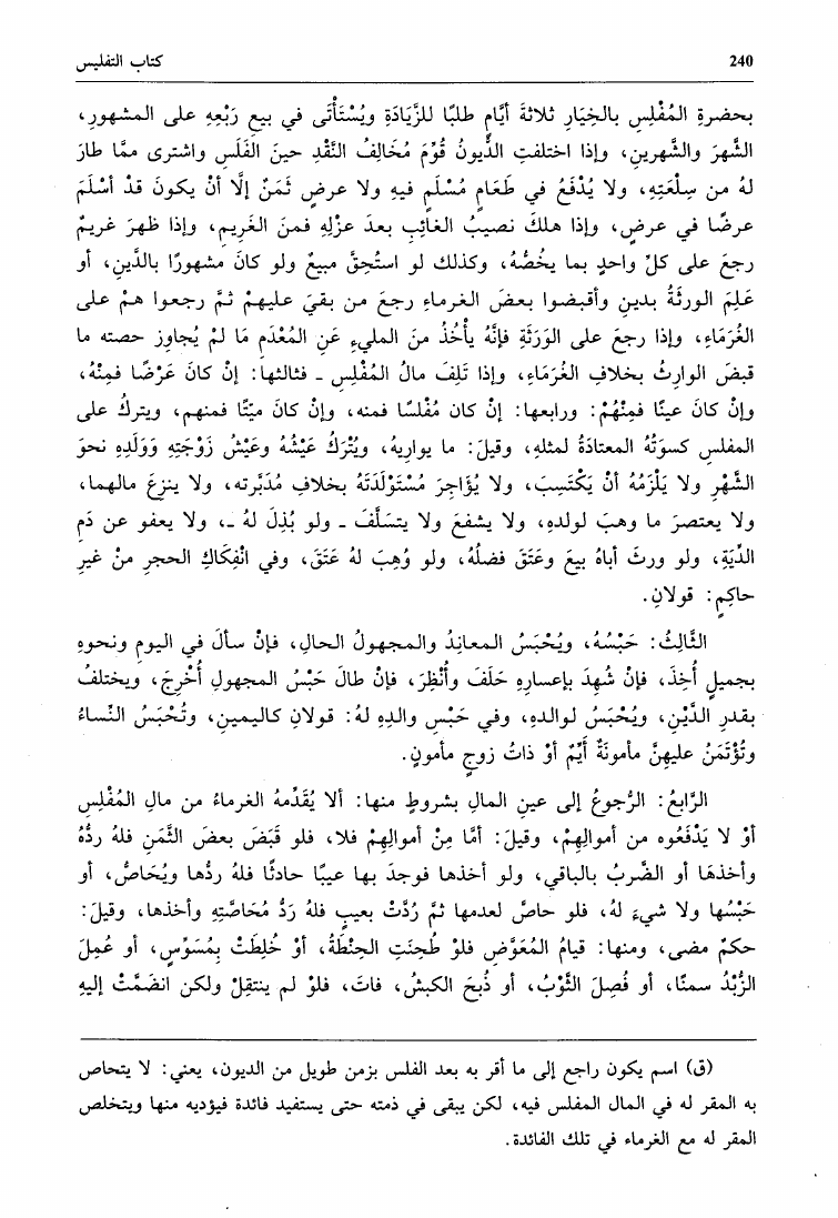 نام کتاب : جامع الأمهات أو مختصر ابن الحاجب الفرعي ومعه درر القلائد وغرر الطرر والفوائد (ت: الطنجي) نویسنده : عثمان بن عمر بن أبي بكر بن الحاجب جلد : 1 صفحه : 240