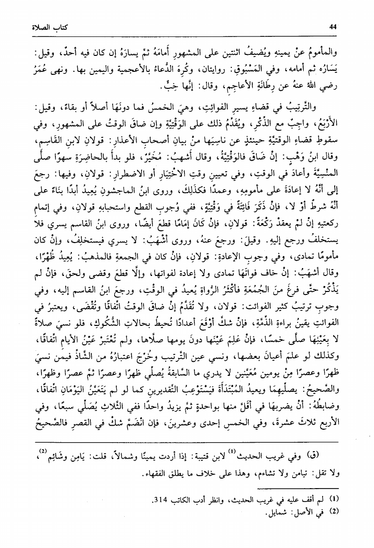 نام کتاب : جامع الأمهات أو مختصر ابن الحاجب الفرعي ومعه درر القلائد وغرر الطرر والفوائد (ت: الطنجي) نویسنده : عثمان بن عمر بن أبي بكر بن الحاجب جلد : 1 صفحه : 44