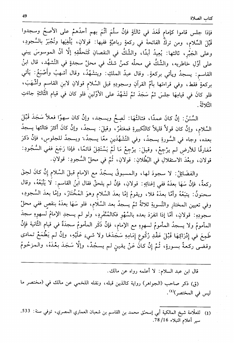 نام کتاب : جامع الأمهات أو مختصر ابن الحاجب الفرعي ومعه درر القلائد وغرر الطرر والفوائد (ت: الطنجي) نویسنده : عثمان بن عمر بن أبي بكر بن الحاجب جلد : 1 صفحه : 49