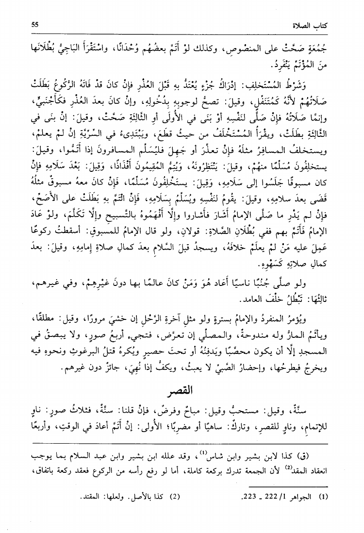 نام کتاب : جامع الأمهات أو مختصر ابن الحاجب الفرعي ومعه درر القلائد وغرر الطرر والفوائد (ت: الطنجي) نویسنده : عثمان بن عمر بن أبي بكر بن الحاجب جلد : 1 صفحه : 55
