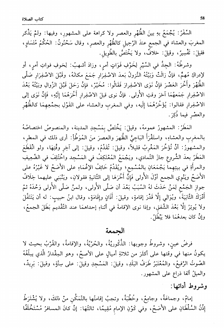 نام کتاب : جامع الأمهات أو مختصر ابن الحاجب الفرعي ومعه درر القلائد وغرر الطرر والفوائد (ت: الطنجي) نویسنده : عثمان بن عمر بن أبي بكر بن الحاجب جلد : 1 صفحه : 58
