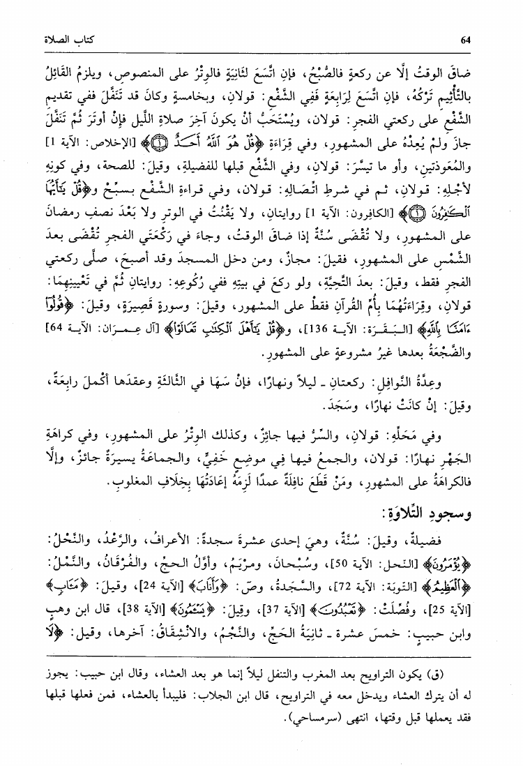 نام کتاب : جامع الأمهات أو مختصر ابن الحاجب الفرعي ومعه درر القلائد وغرر الطرر والفوائد (ت: الطنجي) نویسنده : عثمان بن عمر بن أبي بكر بن الحاجب جلد : 1 صفحه : 64