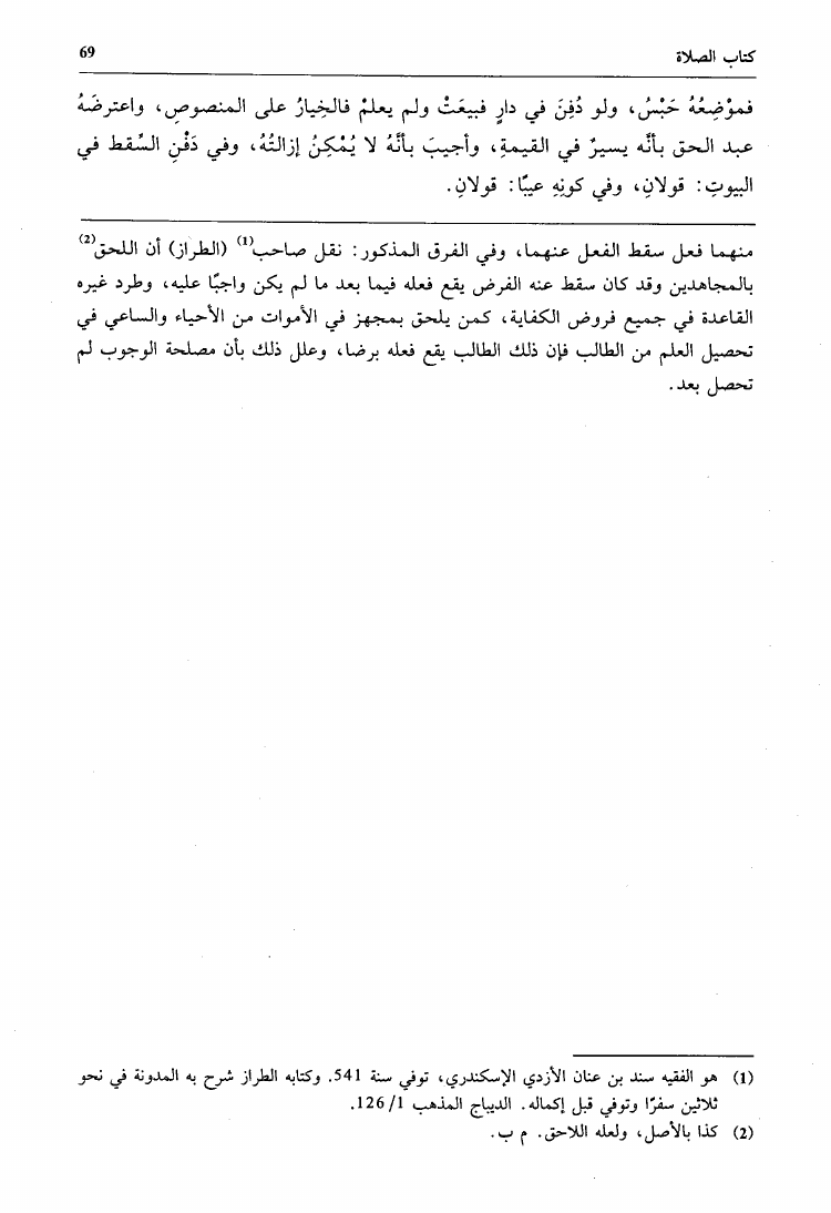 نام کتاب : جامع الأمهات أو مختصر ابن الحاجب الفرعي ومعه درر القلائد وغرر الطرر والفوائد (ت: الطنجي) نویسنده : عثمان بن عمر بن أبي بكر بن الحاجب جلد : 1 صفحه : 69