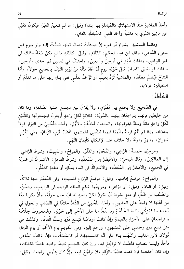 نام کتاب : جامع الأمهات أو مختصر ابن الحاجب الفرعي ومعه درر القلائد وغرر الطرر والفوائد (ت: الطنجي) نویسنده : عثمان بن عمر بن أبي بكر بن الحاجب جلد : 1 صفحه : 79