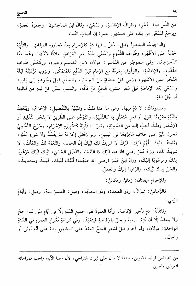 نام کتاب : جامع الأمهات أو مختصر ابن الحاجب الفرعي ومعه درر القلائد وغرر الطرر والفوائد (ت: الطنجي) نویسنده : عثمان بن عمر بن أبي بكر بن الحاجب جلد : 1 صفحه : 98
