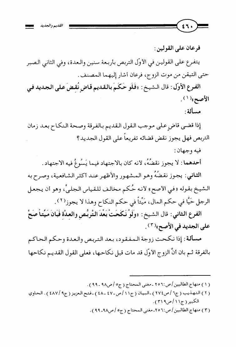 القديم والجديد من أقوال الشافعي من خلال كتاب منهاج الطالبين