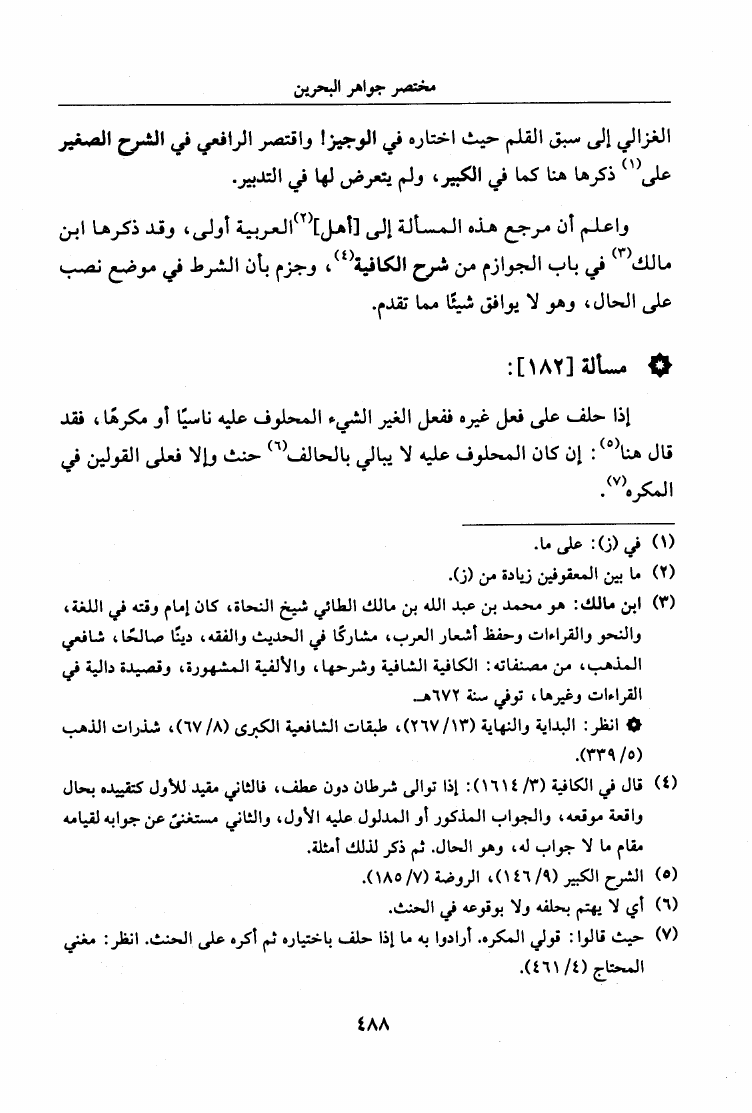 مختصر كتاب جواهر البحرين في تناقض الحبرين للإسنوي
