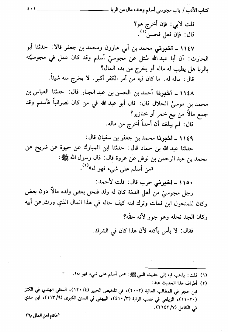 أحكام أهل الملل من الجامع لمسائل الإمام أحمد بن حنبل