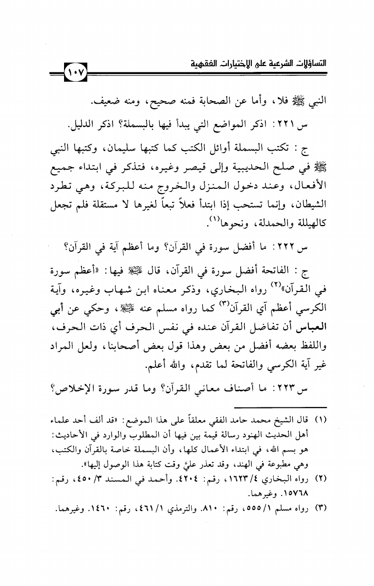 التساؤلات الشرعية على الإختيارات الفقهية لشيخ الإسلام ابن تيمية