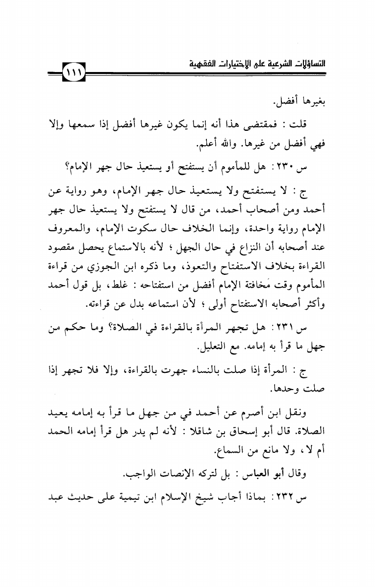 التساؤلات الشرعية على الإختيارات الفقهية لشيخ الإسلام ابن تيمية