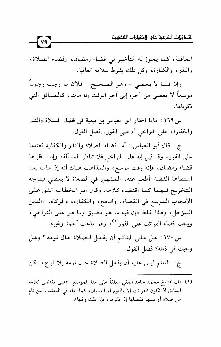 التساؤلات الشرعية على الإختيارات الفقهية لشيخ الإسلام ابن تيمية