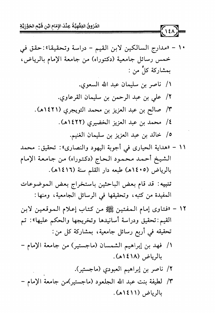 الفروق الفقهية عند الإمام ابن قيم الجوزية جمعاً ودراسة