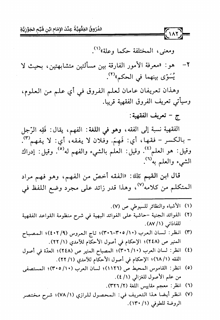 الفروق الفقهية عند الإمام ابن قيم الجوزية جمعاً ودراسة