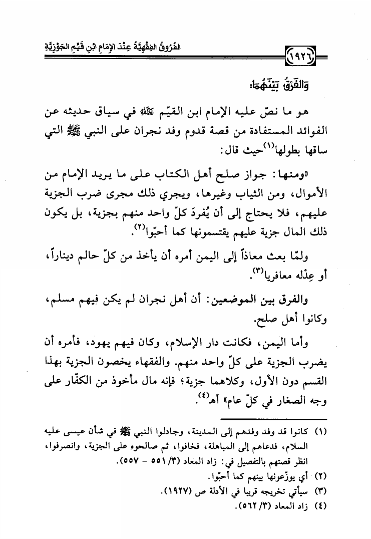 الفروق الفقهية عند الإمام ابن قيم الجوزية جمعاً ودراسة