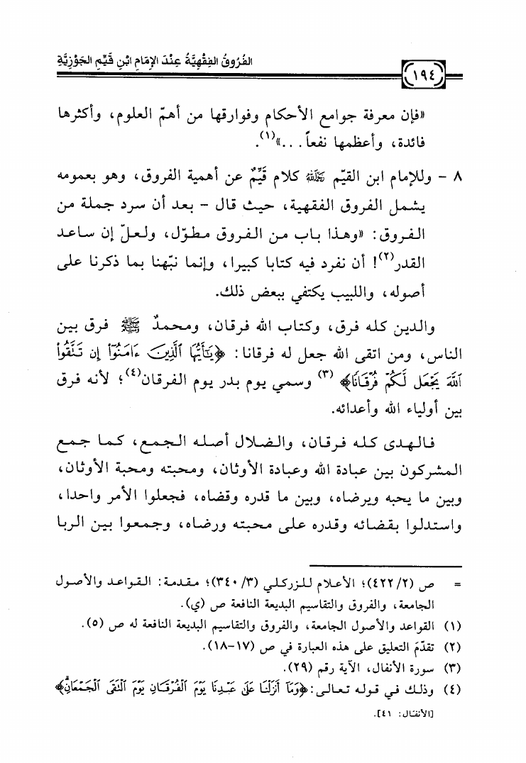 الفروق الفقهية عند الإمام ابن قيم الجوزية جمعاً ودراسة