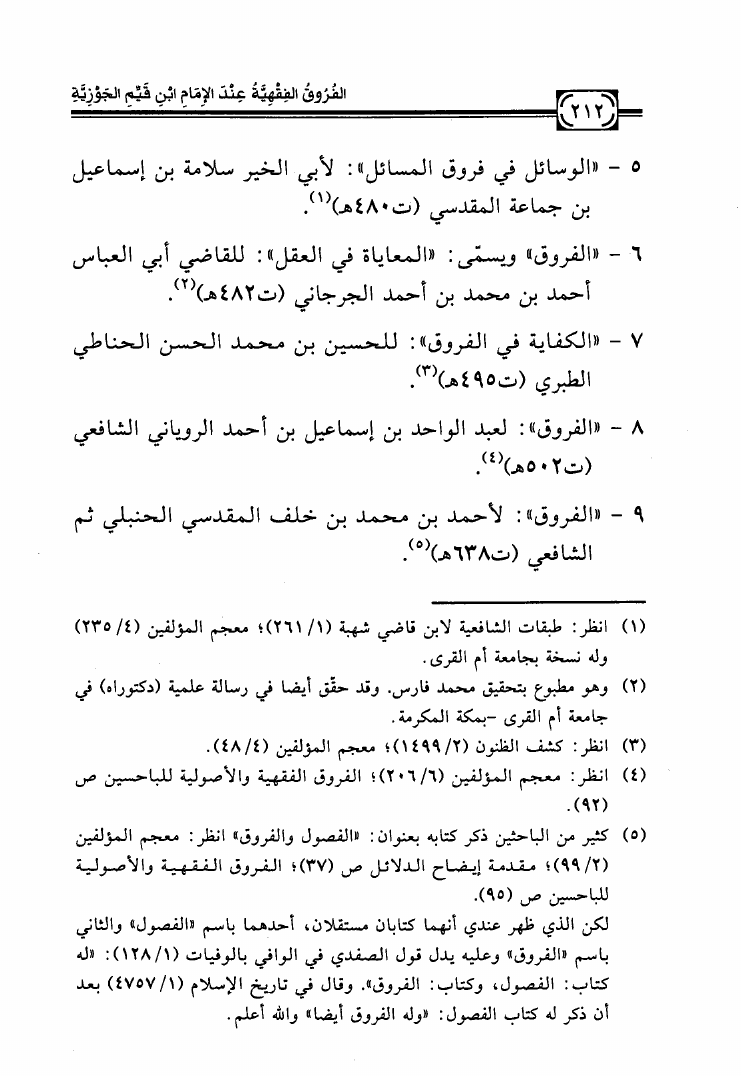 الفروق الفقهية عند الإمام ابن قيم الجوزية جمعاً ودراسة