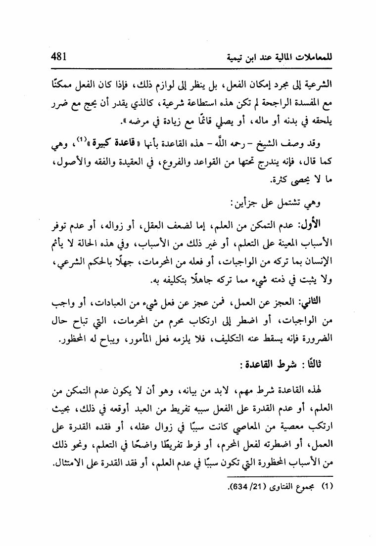 القواعد والضوابط الفقهية للمعاملات المالية عند ابن تيمية جمعا ودراسة