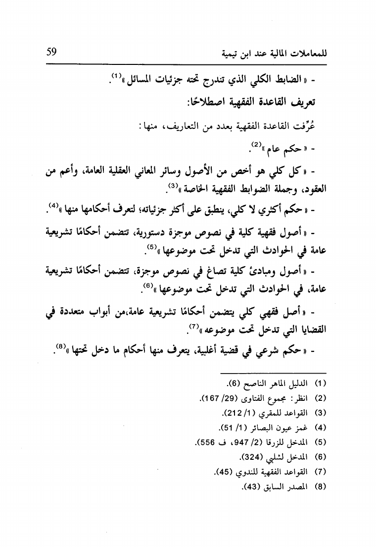 القواعد والضوابط الفقهية للمعاملات المالية عند ابن تيمية جمعا ودراسة