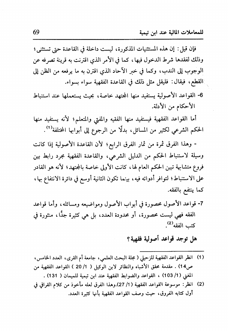 القواعد والضوابط الفقهية للمعاملات المالية عند ابن تيمية جمعا ودراسة