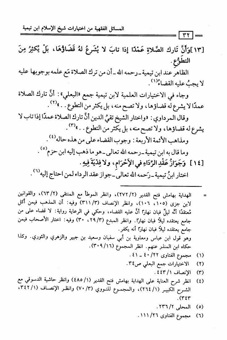 المسائل الفقهية من اختيارات شيخ الإسلام ابن تيمية