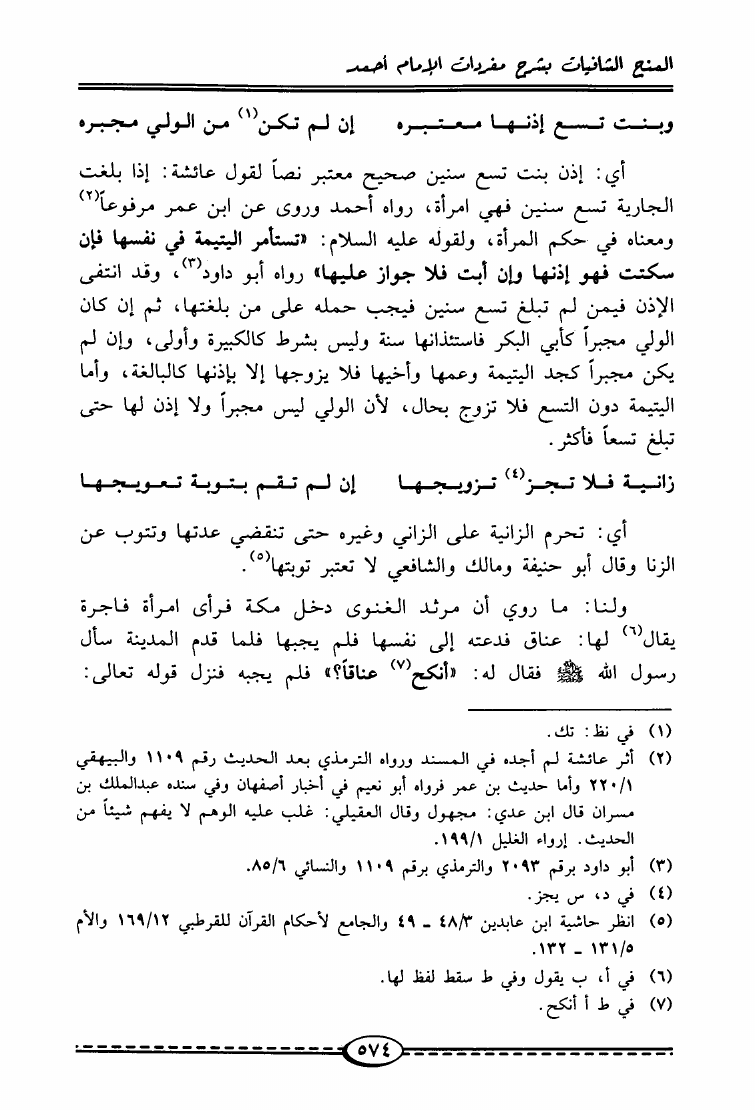 المنح الشافيات بشرح مفردات الإمام أحمد