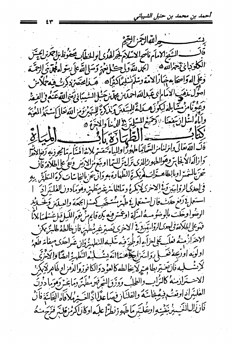 الهداية على مذهب الإمام أبي عبد الله أحمد بن محمد بن حنبل الشيباني