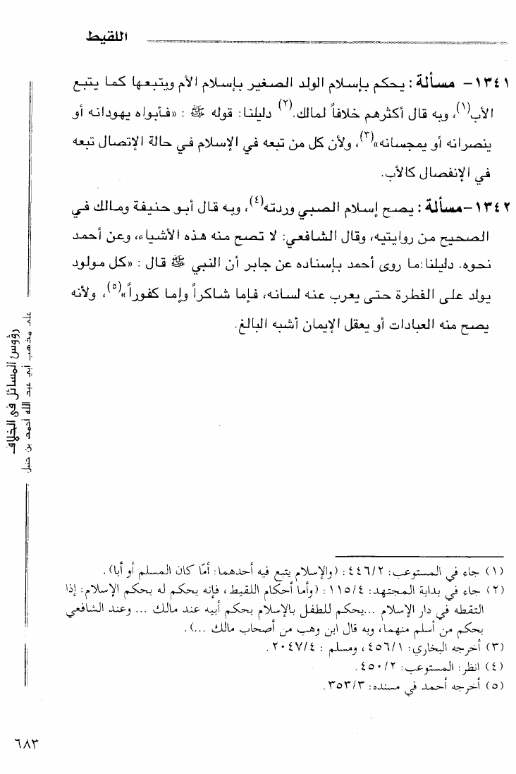 رؤوس المسائل في الخلاف على مذهب أبي عبد الله أحمد بن حنبل (ت بن دهيش)