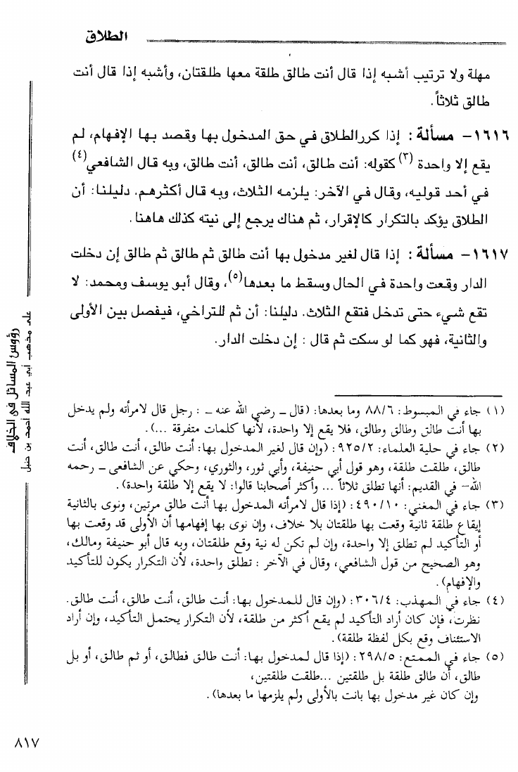 رؤوس المسائل في الخلاف على مذهب أبي عبد الله أحمد بن حنبل (ت بن دهيش)