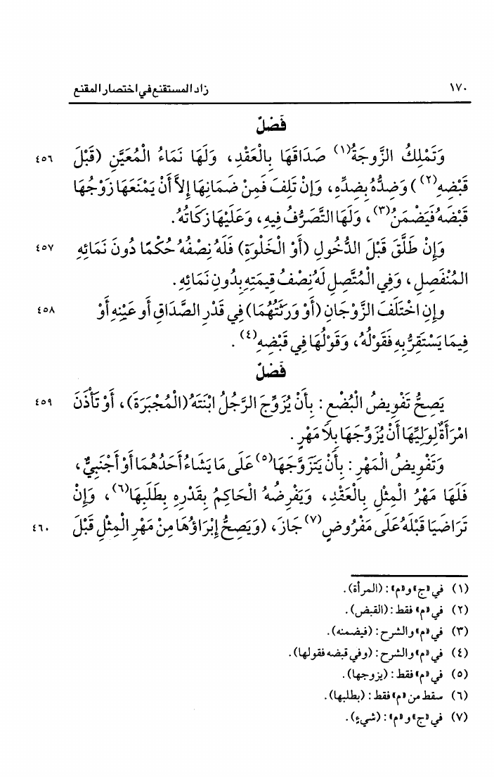 زاد المستقنع في إختصار المقنع ويليه للمحقق فصول مهمة على زاد المستقنع