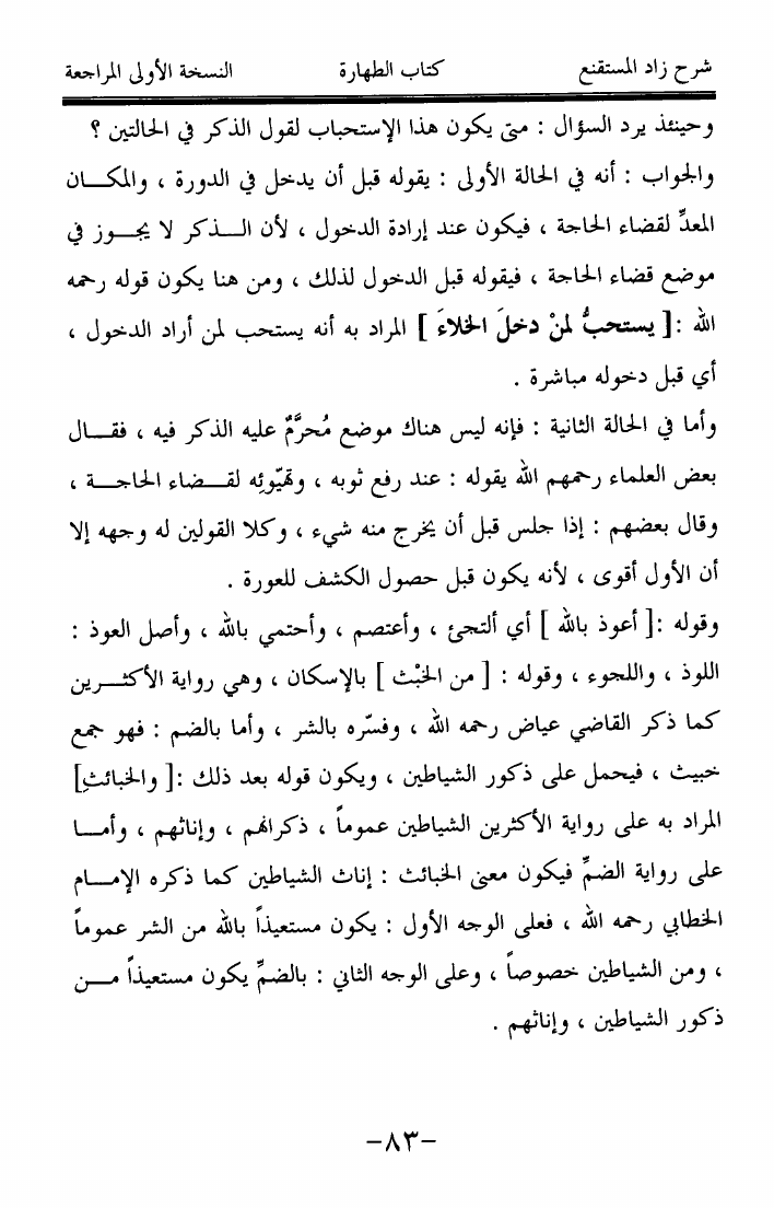 شرح زاد المستقنع في اختصار المقنع (كتاب الطهارة)