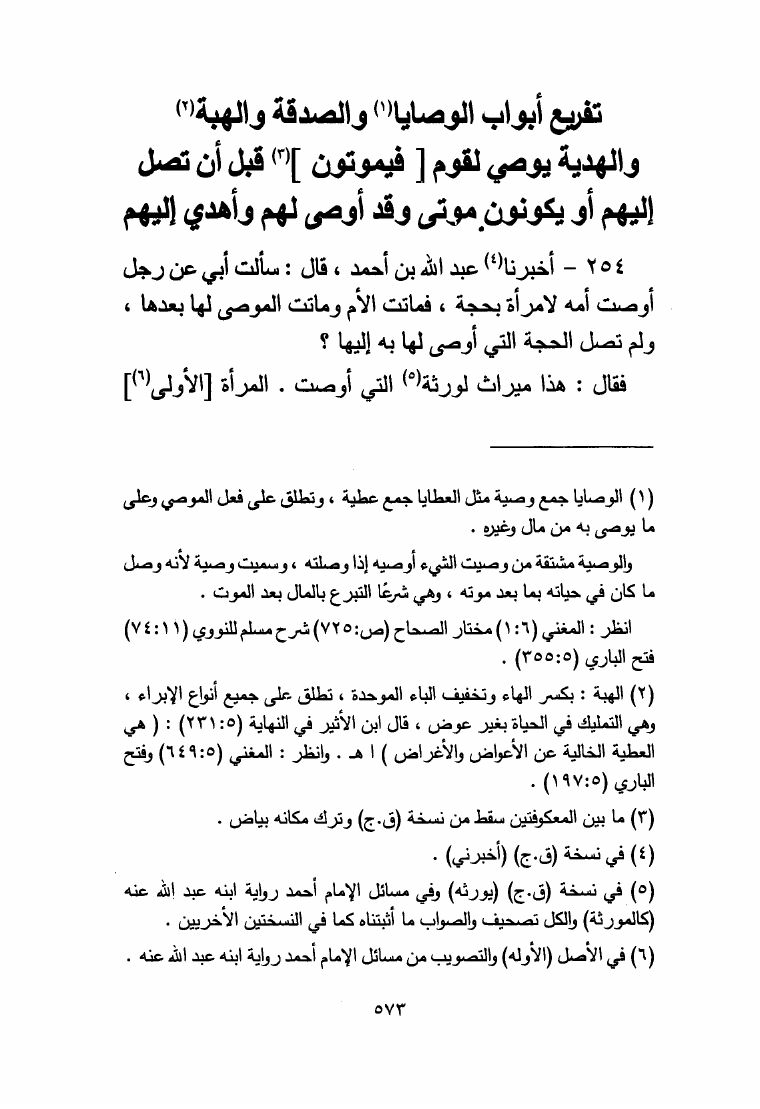 كتاب الوقوف من مسائل الإمام أحمد بن حنبل الشيباني