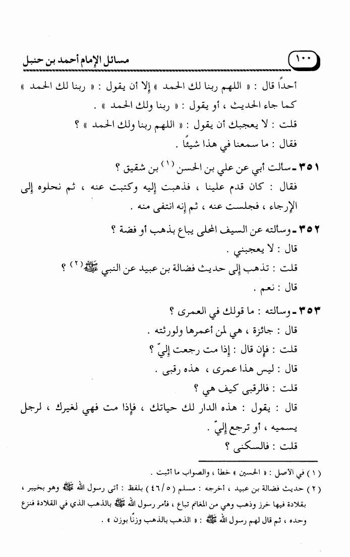 مسائل الإمام أحمد بن حنبل رواية ابنه أبي الفضل صالح (ت. عوض الله)