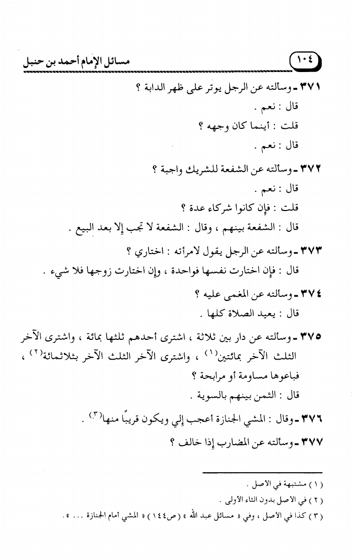 مسائل الإمام أحمد بن حنبل رواية ابنه أبي الفضل صالح (ت. عوض الله)